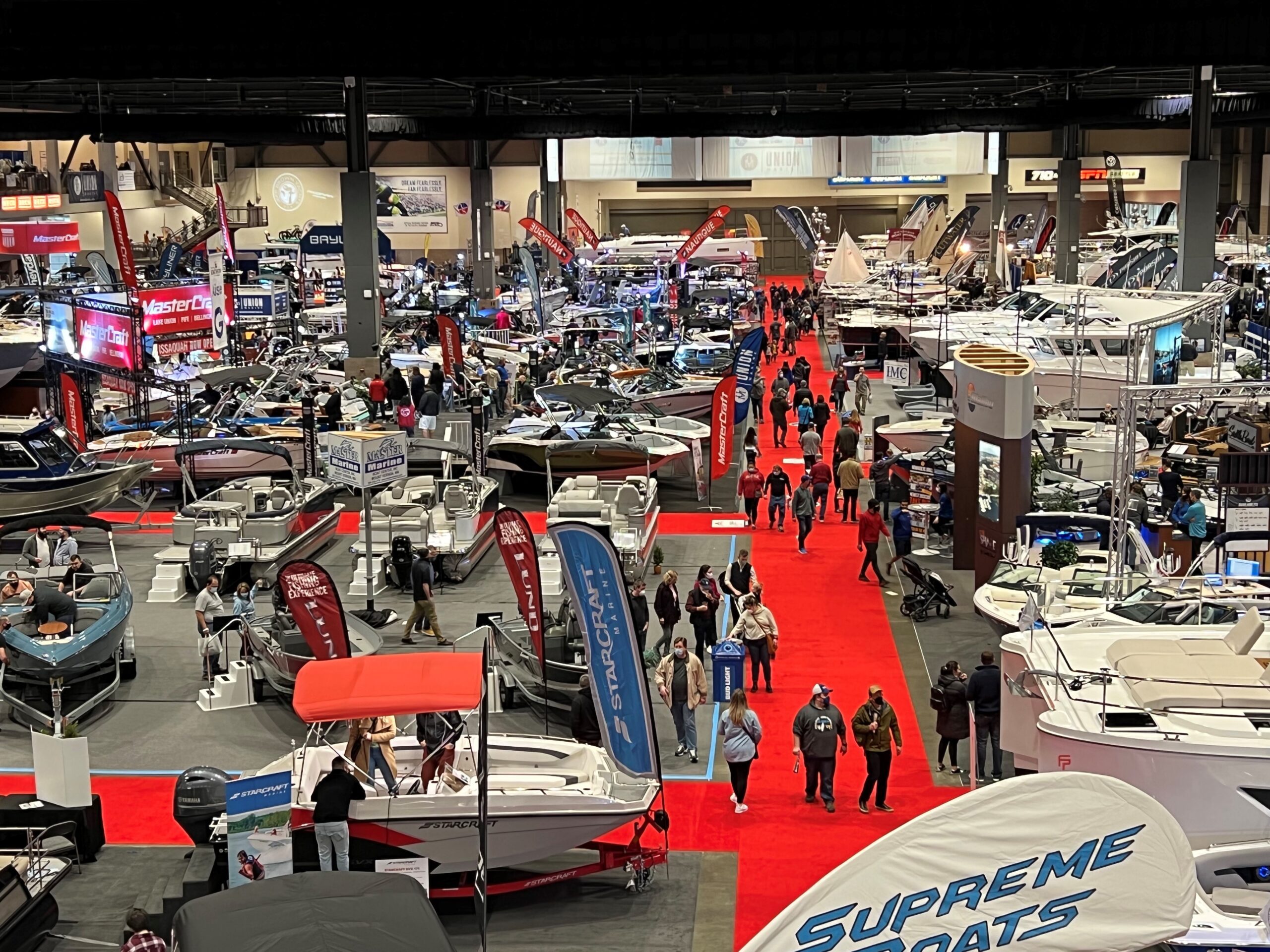 The boat show is an indoors and outdoors event, with boats on display inside Lumen Field Event Center and afloat at Bell Harbor Marina at the Port of Seattle.